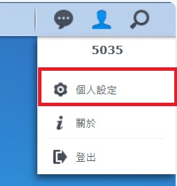 3.登入系統後將滑鼠點選右上角的 【人頭 】即出現下圖,點選【個人設定】便可更改密碼,此外也可查看目前自己所剩的儲存容量。
